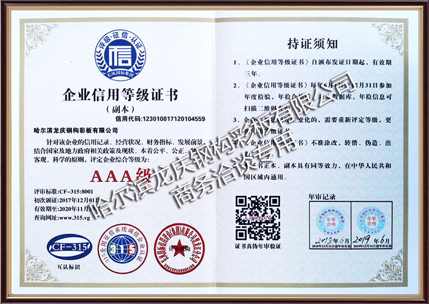 企业信用品级证书