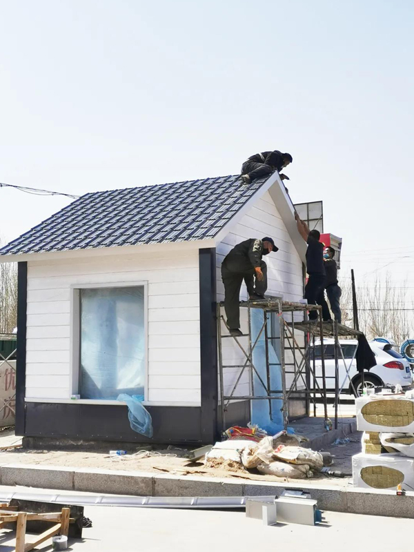 院里的小屋子屋面正在安装琉璃瓦